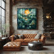 Esta impressão de arte geométrica cativante mostra uma paisagem abstrato de colinas rolantes, um pôr do sol radiante, e um lago sereno, todos feitos em tons vibrantes de chá, verde e ouro. A intrincada composição geométrica cria profundidade e textura, fazer essa peça perfeita para entusiastas da arte moderna ou abstrato. Uma maravilhosa mistura de natureza e geometria, esta trabalho de arte adiciona um toque de sofisticação a qualquer decoração de casa ou escritório.