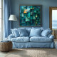 Esta peça de arte abstrato mesmerizante apresenta um arranjo em camadas de retângulos verdes, azuis e lacrimogêneos, criando um design geométrico harmonioso. Os sutis gradientes e a profundidade textural dão à peça um sentimento moderno e sofisticado, perfeito para melhorar qualquer espaço de moradia ou escritório. Ideal para amantes de abstrato e arte geométrica, este trabalho de arte adiciona uma declaração tranquila, mas ousada, a qualquer decoração contemporânea.
