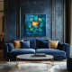 Este espantoso impressão de arte geométrica apresenta um arranjo multicamadas de quadrados lacustres e azuis com uma paisagem central impressionante em tons quentes de laranja e verde. A grade estruturada cria profundidade, atraindo o olhar do espectador para a cena serena no centro. Perfeito para os interiores modernos, este desenho abstrato combina padrões geométricos com beleza natural, oferecendo uma combinação única de estrutura e tranquilidade.