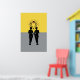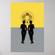 Arte moderna de parede "Astra Feminine Colorblock" mostra duas silhuetas femininas com círculo astral e louros no fundo de blocos coloridos amarelo e cinza da moda