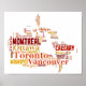 Word art poster impressão apresenta o mapa canadense esboço e nomes das principais cidades canadenses
