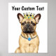 Esta ilustração de um bulldog francês usando uma coroa pode ser personalizada com o seu próprio texto para torná-la interessante. Você pode decidir se coloca o nome de um cachorro ou um ditado engraçado. Isso torna uma peça engraçada de arte para colocar na parede.