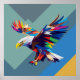 Águia voando com grandes asas desenhadas usando estilo de arte WPAP, arte pop, ilustração