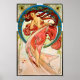 1898 Art Nouveau litograph poster do artista checo Alphonse Mucha (1860-1939). Linda mulher com um vestido vermelho, flores em seu longo, fluente, cabelo vermelho brilhante, arquejada pelas costas, olhando sobre os ombros encarnudos, em pé sobre os dedos dos pés.
