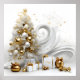 Árvore abstrato branca de natal com sotaque de ouro Poster