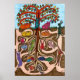A Árvore da Vida, uma árvore com muitos ramos, é um tema recorrente arquetípico em muitas culturas mundiais, sinalizando a interconectividade de toda a vida em nosso planeta. Ela aparece na trabalho de arte, teologia, filosofia e mitologia em todo o mundo. Esta versão colorida apresenta folhas multicoloridas e um extenso sistema de raízes subterrâneas, onde muitos coelhos multicoloridos fazem sua casa. Cada coelho é coberto por marcações coloridas únicas que lembram as encontradas nas talhas pintadas de animais Oaxacanos.
