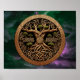 Linda árvore da vida com detalhes do excelente sobre o latido e árvores. O fundo verde e roxo do céu de galáxia.