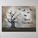 Poster Árvore de Halloween Spooky com Raven e Bats