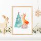 Poster Árvore de Natal Aquarela e Raposa Fofa