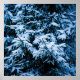 Neve na floresta. Flocos de neve no ar. A neve cobriu a árvore de Natal. Cor azul e verde, humor de inverno. Feliz Natal e Feliz ano novo para você e seu!