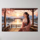 Poster Árvore de Sakura Sunset com Linda Mulher Asiática