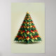 Uma árvore de Natal feita inteiramente de triângulos em camadas sobrepostas, de vários tamanhos e tons de verde, ouro e vermelho.