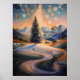 Poster Árvore Starry Winter no estilo Pointillist