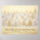 Árvores de Natal Douradas e prateadas em um fundo branco de encosta de neve é de uma pintura estilizada da floresta de pinheiros com aquarelas. Esta representação elegante é apresentada num poster de feriado. "Feliz Natal e Feliz ano novo" é a saudação sugerida na falsa borda de ouro, mas é editável. Você pode alterá-la ou excluí-la. Certifique-se de alterar o nome da família de exemplo (e ano) para o seu próprio nome ou deixe-o como quiser.