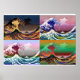 Póster As 4 ondas de excelente de Kanagawa