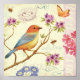© Daphne Brissonnet / Wild Apple. Um pássaro colorido empoleirado em um galho. Há flores e borboletas na imagem também.