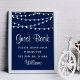 Simples, mas elegante, as luzes de cordas na coleção de marinhos azuis é um design com luzes de cordas brancas adoráveis em um fundo azul marinho, o que é perfeito para qualquer celebração de casamento moderna. Este indicativo de livro de convidado pode ser personalizado para a sua ocasião especial e faria o sinal perfeito para casamentos, chás de panela, festas de noivado, festas de aniversário e muitos outros eventos e ocasiões especiais. Adicione seu texto personalizado a este design usando as caixas "Editar este modelo design" no lado direito do item, ou clique no botão azul "Personalizar" para organizar o texto, alterar as fontes e cores e também adicionar informações ou imagens adicionais a este design.