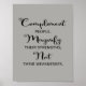 Cinza média com inscrição manuscrita preta, com citação na leitura da poster: "Pessoas de complemento. Amplifique suas forças, não suas fraquezas" da Farmhouse Living. Selecione uma opção de enquadramento para terminar o poster e prepará-lo para travar!