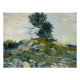 As Rochas. Vincent van Gogh. Paisagem em tons verdes-azuis frios. Há pedras no primeiro plano. No meio há um monte com uma árvore e pedras. O céu está nublado. Reprodução de famosas imagens de arte no dominio público.