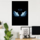 Poster Asas Anjos Azuis Brilhantes em fundo preto