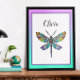 Poster personalizado com libélula com asas coloridas de vidro.