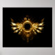 Asas mecânicas brilhantes, com engrenagens e faixa redonda de latão. Steampunk