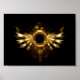 Asas mecânicas brilhantes, com engrenagens e faixa redonda de latão. Steampunk