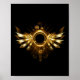 Asas mecânicas brilhantes, com engrenagens e faixa redonda de latão. Steampunk