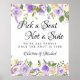 Rosas roxos e marfim muito bonito criam um design floral rústico. Escolha um assento, não um lado é escrito em uma fonte ousada e moderna. Somos todos familiares quando o nó está amarrado está escrito em uma fonte clássica de serifa. Os nomes dos casais de casamento estão escritos em letra de roteiro. Todo o texto pode ser editado. Você pode alterar a fonte, o tamanho e a cor do texto e da cor do plano de fundo também.