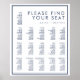 Nosso gráfico de assentos de 16 mesas de casamento branco e marinho foi projetado em um estilo moderno e mínimo com branco e azul marinho aceito. A bela combinação com san serif moderno e a elegante tipografia serif aumenta ainda mais a moderna design tipográfica mínima. Personalize o texto, a fonte e as cores para se adequarem às suas preferências de design de casamento.
