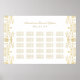 O design do cartaz de assentos de casamento elegante apresenta uma borda decorativa ornamentada com uma aparência brilhante dourada metálica champanhe, um monograma com os nomes dos noivos e data do casamento, texto personalizado com nomes dos convidados em ordem alfabética, juntamente com seus números de mesa. Esquema de cores branco e dourado champanhe.