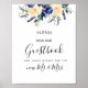 Sinal de Casamento Elegante - Por favor assine nosso Guestbook em azul e bege - Coleção Sandra