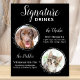 Signature Cocktails vindo de seus animais de estimação! Inclua seu melhor cachorro, melhor gato e qualquer animal de estimação no seu casamento com seu próprio bar de bebida para seus hóspedes. Perfeito para amantes de cães, e um bar especial de cães será um sucesso no seu casamento. Branca simples, mas elegante, com folhas de eucalipto pretas. Personalize esta placa de casamento de estimação com suas fotos favoritas de cachorro, gato, cachorro ou gatinho, nomes e bebidas de assinatura!. COPYRIGHT © 2020 Judy Burrows, Black Dog Art - Todos Os Direitos Reservados. Assinatura de Cão Bebe Bar de Casamento de Pet Preto