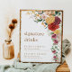 Belo sinal de bebidas com assinatura de casamento inspirado em vassoura, com várias flores de aquarela misturadas com folhagem verde e erva de pampas de leite em vários tons de vermelho, blush, amarelo e verde. Personalize o sinal com a sua própria redação! Se quiser alterar o estilo da fonte, a cor ou o posicionamento do texto, basta clicar no botão "Personalizar Mais".