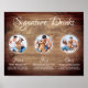 Signature Cocktails vindo de seus animais de estimação! Inclua seu melhor cachorro, melhor gato e qualquer animal de estimação no seu casamento com seu próprio bar de bebida para seus hóspedes. Perfeito para amantes de cães, e um bar especial de cães será um sucesso no seu casamento. Branca simples, mas elegante, com folhas de eucalipto na madeira russa do país. A nossa placa de bebida de marca contém fotos elegantes e as bebidas Dele, Hers e Nossos. Personalize esta placa de casamento de estimação com suas fotos favoritas de cachorro, gato, cachorro ou gatinho, nomes e bebidas de assinatura!. COPYRIGHT © 2020 Judy Burrows, Black Dog Art - Todos Os Direitos Reservados. Assinatura Personalizada Bebe Poster de Casamento de Pet Cachorro Russo