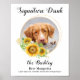 Signature Drinks de seus animais de estimação! Inclua seu melhor cachorro, melhor gato e qualquer animal de estimação no seu casamento com seu próprio bar de bebida para seus hóspedes. Perfeito para amantes de cães, e um bar especial de cães será um sucesso no seu casamento. Branca simples, mas elegante, com a estrutura floral de girassol. Personalize esta placa de casamento de estimação com suas fotos favoritas de cachorro, gato, cachorro ou gatinho, nomes e bebidas de assinatura!. COPYRIGHT © 2020 Judy Burrows, Black Dog Art - Todos Os Direitos Reservados. Assinatura Personalizada Beber Girassóis Girassóis Poster de Casamento Pet