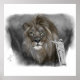Esta é uma pintura digital de uma pessoa pintando um mural de leão em uma parte de trás muscular.