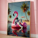 Poster Astronauta Engraçado na Pink Flamingo Beach Wall a