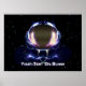 Uma imagem fractal azul e roxa que se assemelha ao capacete e ombros de um astronauta em um fundo estrelado. Adicione seu próprio texto.
