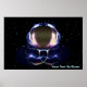Uma imagem fractal azul e roxa que se assemelha ao capacete e ombros de um astronauta em um fundo estrelado. Adicione seu próprio texto.