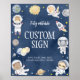 Adicione um toque cósmico à sua comemoração com este Sinal de Mesa de Astronauta Safari Astronaut Outer Space Safari! Apresentando animais bonitos de safari em capacetes espaciais flutuando entre estrelas e planetas, é a maneira perfeita de guiar convidados e decorar sua festa com tema espacial com charme selvagem e fora do mundo.