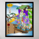Esta vibrante e impressionante arte de muro apresenta uma figura lindamente estilizada adornada em roupas tradicionais japonesas, que fica graciosamente em uma ponte. O personagem, representado quimicamente por um toque animalista, tem um chapéu grande e foliar, contribuindo para uma estética encantadora e lúdica. O fundo mostra uma paisagem serena com um verde-luxuoso e um pôr do sol pitoresco, definindo um tom sereno mas dinâmico. Os intrincados padrões e as cores ousadas do vestuário evocam um sentido de herança cultural e de arte. Ideal para acrescentar um toque de elegância e de capricho a qualquer espaço, esse trabalho de arte celebra a fusão da natureza e da cultura tradicional japonesa. Esta peça equilibra, com mestria, os elementos artísticos tradicionais japoneses com a interpretação moderna lúdica. Os padrões detalhados, a composição cuidadosa e os gradientes de cores ricas demonstram talento artístico enquanto mantêm o apelo caprichoso do seu felino. O efeito geral cria uma peça sofisticada que acrescentaria de forma impressionante os espaços contemporâneos e tradicionalmente estilizados