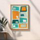 Retro lúcido, esse design abstrato com retângulos, átomos e estereótipos esmerilados é uma na moda para adicionar um pouco de talento do século médio a qualquer espaço. Perfeito para pessoas que adoram estilo retro-vintage.
