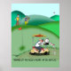 Um caddy dando um golfista a um clube diz, "Cuidado com o perigo desse buraco, um auditor da Receita Federal." Um auditor está num carrinho de golfe numa armadilha de areia.