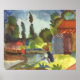 Tunislandschaft mit sitzendem Araber. Fazer a Islândia tremer com o árabe sentado. 22 × 28 cm Aquarela. Viveu num tempo particularmente inovador para a arte alemã, que via o desenvolvimento dos principais movimentos expressionistas alemães, assim como a chegada dos sucessivos movimentos avant-garde que se formavam no resto da Europa. Como um verdadeiro artista de seu tempo, Macke sabia integrar em sua pintura os elementos da vanguarda que mais o interessava. August Macke foi nascer em Meschede, Alemanha. O seu pai, August Friedrich Hermann Macke (1845-1904), era empreiteiro de obras e a sua mãe, Maria Florentine, nascida Adolph (1848-1922), era oriunda de uma família agrícola na região alemã de Sauerland. A família vivia em Brüsseler Straße até os 13 de agosto. Ele viveu a maior parte de sua vida criativa em Bona, com exceção de alguns períodos passados no lago Thun na Suiça e várias viagens a Paris, Itália, Holanda e Tunísia. Em Paris, onde viajou pela primeira vez em 1907, Macke viu o trabalho dos Impressionistas, e logo depois foi para Berlim e passou alguns meses no estúdio de Lovis Corinth. Seu estilo se formou no modo do impressionismo francês e do Poste-impressionismo e, mais tarde, passou por um período Fauve. Em 1909 ele se casou com Elisabeth Gerhardt. Em 1910, pela sua amizade com Franz Marc, Macke encontrou-se com Kandinsky e, durante algum tempo, partilhou a estética não objetiva e os interesses místicos e simbólicos de Der Blaue Reiter. O encontro de Macke com Robert Delaunay em Paris, em 1912, foi para ele uma espécie de revelação. O Cubismo cromático de Delaunay, que Apollinaire chamara de Orfismo, influenciou a arte de Macke a partir desse ponto. Ele Compra que o Windows pode ser considerado uma interpretação pessoal do Windows de Delaunay, combinada com a simultaneidade de imagens encontradas no Futurismo Italiano. A atmosfera exótica da Tunísia, onde Macke viajou em 1914 com Paul Klee e Louis Moilliet, foi fundamental para a criação da abordagem luminista de seu período final, durante o qual produziu uma série de trabalhos já considerados obras-primas. August Macke pode ser considerado expressionismo (movimento que floresceu na Alemanha entre 1905 e 1925), e também como parte do Fauvism. As pinturas se concentram principalmente em expressar sentimentos e preferencialmentes de humor do que em reproduzir a realidade objetiva, geralmente distorcendo cor e forma. A carreira de Macke foi interrompida pela sua morte precoce na frente de Champagne em setembro de 1914, o segundo mês da Primeira Guerra Mundial. Sua pintura final, Farewell, retrata o clima de desgosto que se instalou após o surto da guerra. O expressionismo foi um movimento cultural, inicialmente na poesia e na pintura, originário da Alemanha no início do século 20. O seu traço típico é apresentar o mundo sob uma perspectiva totalmente subjetiva, distorcendo-o violentamente para obter um efeito emocional e transmitir vivamente sentimentos e ideias pessoais. Artistas expressionistas tentaram expressar o significado de "estar vivo" e preferencialmentes de experiências emocionais do que a realidade física. O expressionismo emergiu como um "movimento vanguardista" na poesia e pintura antes da primeira Guerra Mundial; nos anos de Weimar era apreciado por uma plateia de massas, tendo seu pico de popularidade em Berlim, durante o 1920. O expressionismo é exibido em muitas formas de arte, incluindo: pintura, literatura, teatro, filme, arquitetura e música. O termo frequentemente implica angústia emocional. De modo geral, pintores como Matthias Grünewald e El Greco podem ser chamados de expressionistas, embora na prática o termo seja aplicado principalmente a obras do século 20. O estresse expressionista na perspectiva individual também foi uma reação ao positivismo e a outros movimentos artísticos como o naturalismo e o impressionismo. Der Blaue Reiter (The Blue Rider) era um grupo de artistas da Neue Künstlervereinigung München, em Munique, Alemanha. Der Blaue Reiter foi um movimento alemão que durou de 1911 a 1914, fundamental para o expressionismo, juntamente com Die Brücke, fundado na década anterior em 1905. Les Fauves (francês para os animais selvagens) era um grupo de curta duração e frouxo de artistas modernos do início do 20, cujas obras enfatizavam as qualidades pareadas e a cor forte sobre os valores representativos ou realistas retidos pelo impressionismo. Enquanto o Fauvism como estilo começou por volta de 1900 e continuou depois de 1910, o movimento como tal durou apenas três anos, 1905-1907, e teve três exposições. Os líderes do movimento foram Henri Matisse e André Derain. A pintura é um modo de expressão e as formas são numerosas. O desenho, a composição, a abstração e outros estéticos podem servir para manifestar a intenção expressiva e conceptual do praticante. As pinturas podem ser naturalistas e representativas (como numa pintura de natureza morta ou paisagística), fotográficas, abstrato, carregadas com conteúdo narrativo, simbolismo, emoção ou de natureza política. A pintura é a prática de aplicar tinta, pigmento, cor ou outro meio a uma superfície (base de suporte). Na arte, o termo descreve tanto o ato quanto o resultado, que é chamado de pintura. As pinturas podem ter superfícies de apoio, tais como paredes, papel, canvas, madeira, vidro, laca, argila ou betão. As pinturas podem ser decoradas com folha de ouro e algumas pinturas modernas incorporam outros materiais, incluindo areia, argila e restos de papel. Uma parte da história da pintura na arte oriental e ocidental é dominada por temas e ideias espirituais; exemplos desse tipo de pintura vão desde trabalho de arte, retratando figuras mitológicas em cerâmica a cenas bíblicas feitas nas paredes interiores e no teto da Capela Sistina, a cenas da vida de Buda ou outras cenas de origem religiosa oriental. Entre os rumos contínuos e atuais na