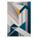Uma arquitetura abstrata se ergue em linhas geométricas que se cruzam como arranha-céus de luz. O tom dourado irrompe pelo azul e cinza, revelando um nascer do sol simbólico que une força e delicadeza. A obra transmite modernidade, esperança e dinamismo das cidades em crescimento.