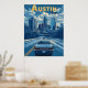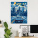 Capture a icônica Ponte da Avenida do Congresso em Austin, Texas com este poster que lembra posters viagens vintage. Esta design única dá vida à energia da cidade. É uma maneira perfeita de compartilhar um pedaço de Austin com seus entes queridos.