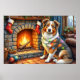 Poster Australian Shepherd Fireplace with Christmas Light