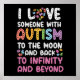 Esta engraçada consciência do autismo que a família apoia o mês design mostra "eu amo alguém com autismo para a lua e de volta ao infinito e além"