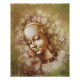 Ilustração de esboço de lápis no estilo Velho Mundo com sensibilidade steampunk. As engrenagens da automação moldam uma bela e sonhadora face robótica. Pelo Paxdomino.